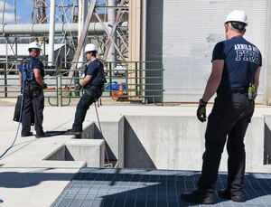 From left, Lt. Col. Lane Haubelt, chief, Propulsion Test Branch, Test Division, Arnold Engineering Development Complex, administers the oath of office to newly-promoted Lt. Col. Bradley Breaux during a ceremony Feb. 25, 2022, at Arnold Air Force Base, Tenn. (U.S. Air Force photo by Jill Pickett)