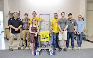 During a retirement ceremony held for Col. Raymond Briggs, right, May 11 at Arnold Lakeside Center, Maj. Gen. David Harris, left, Air Force Test Center commander, pins the Legion of Merit medal onto Briggs’ lapel. The Legion of Merit is an award given for exceptionally meritorious conduct in the