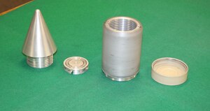 U.S. Air Force Col. Scott A. Cain, Arnold Engineering Development Complex commander, presents Mrs. Olga Oakley, Hands-On Science Center's Air Force STEM director, with a grant check for $113,000 at the Hands-On Science Center, April 5, 2018.The Hands-On Science Center runs the Air Force Science,
